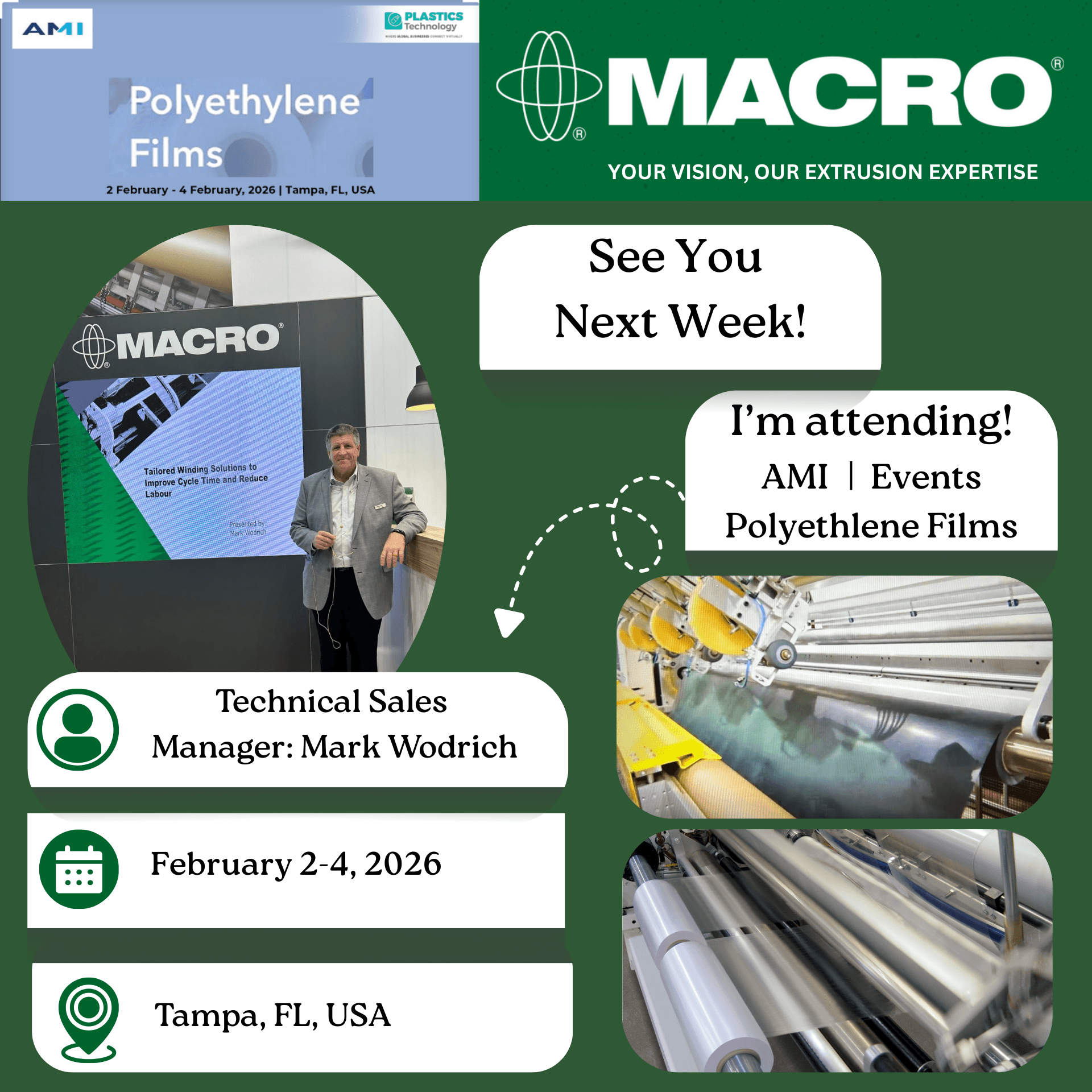 Stay tuned for Macro's exciting upcoming events, where industry expertise meets innovation. Join us to explore cutting-edge solutions and connect with leading minds in plastic film and sheet extrusion.